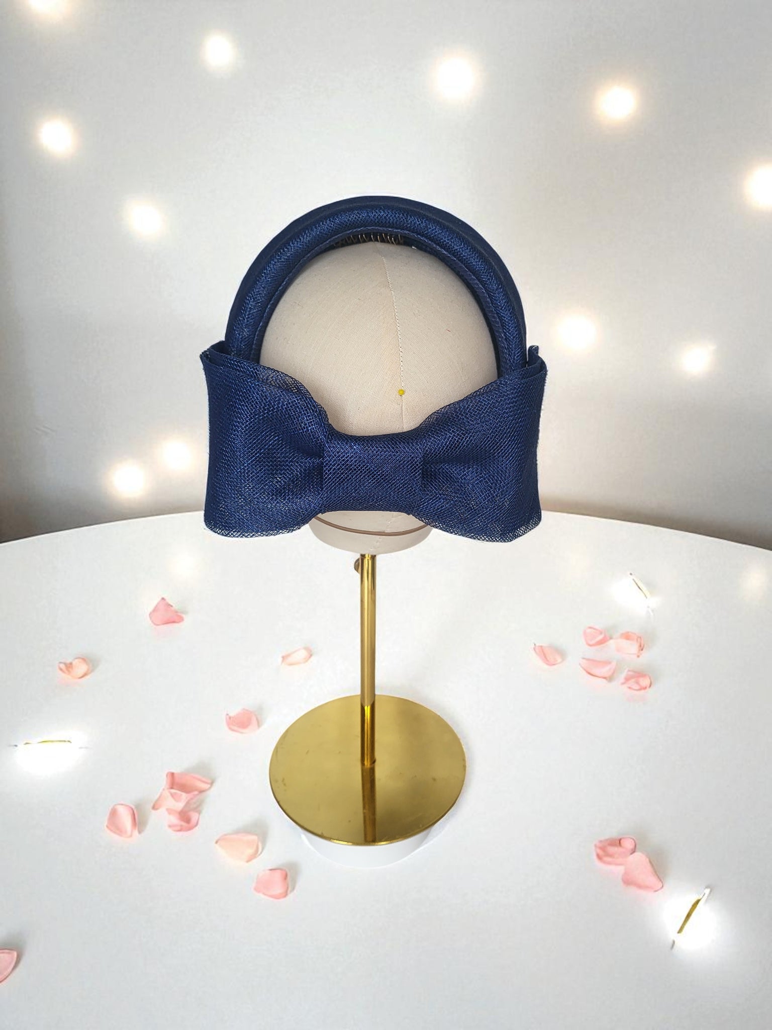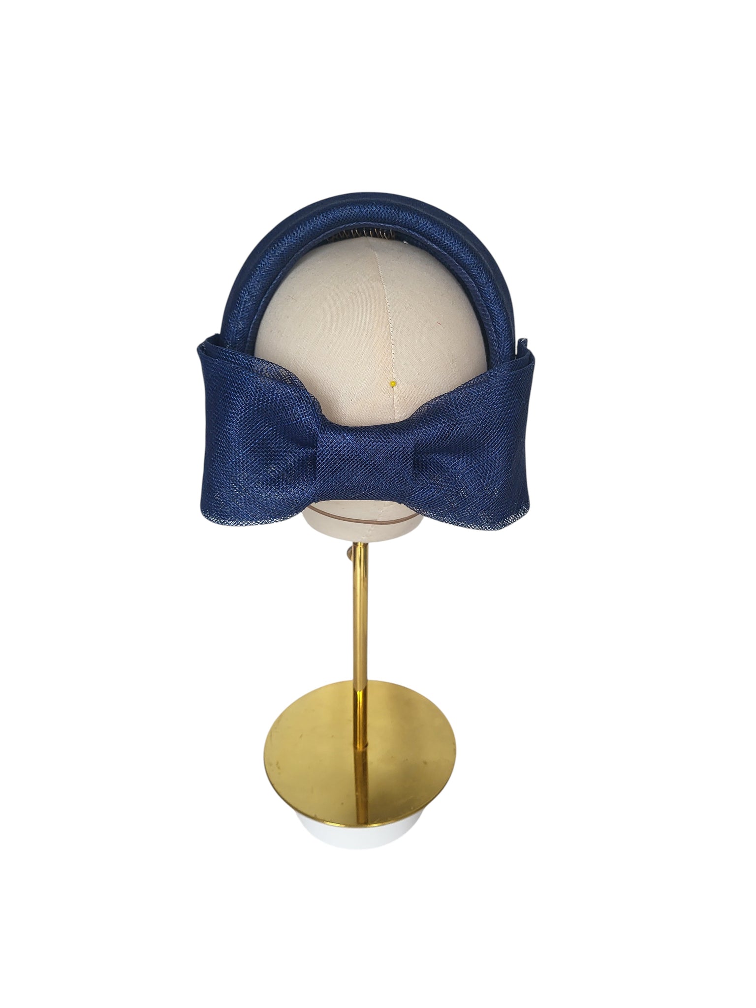 Navy Blue Bow Ridged Headband Fascinator, with Back Bow, 8 cm wide